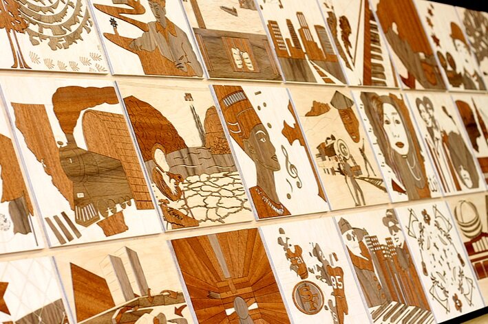 The final designs were produced in high-quality wood veneers manufactured with the aid of a CNC laser. Three Community Benches were completed. One bench resides on the main floor of the San Francisco Unified School District’s administration offices, a second at the Thurgood Marshall High School administration office in San Francisco, and a third at the San Francisco State University Library.